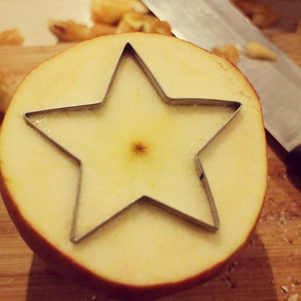 Я стала оглядываться в поисках подходящего ножа и увидела формочку для печенья. Мне кажется, что такое отверстие больше подходит для рождественского блюда