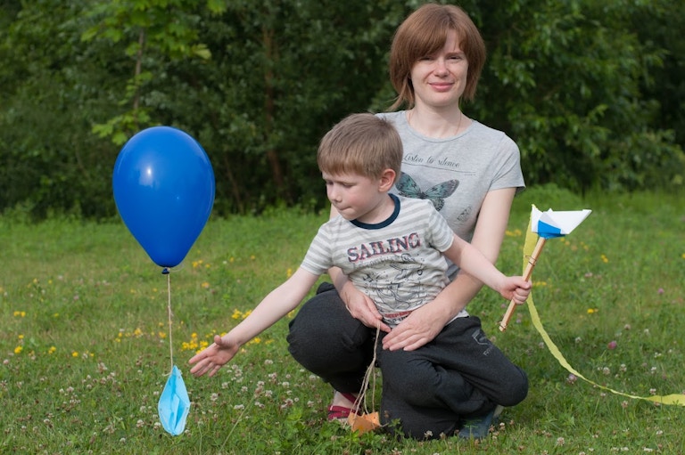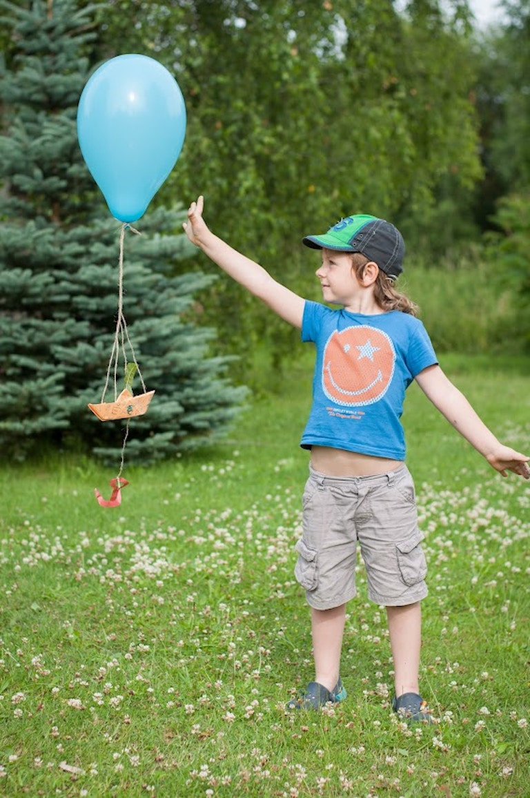 - Надувайте шарики и подвязывайте к ним кораблики.
