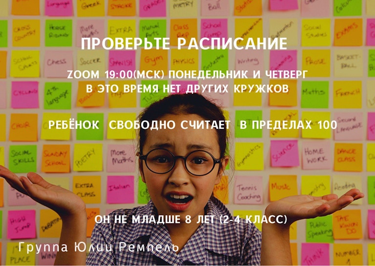 А что если собрать группу детей, которым тоже нужно выучить таблицу? И собираться 1 или 2 раза в неделю в Зуме на ваших занятиях. Когда видишь, что есть те, кто тоже учит таблицу умножения — заниматься не так тоскливо. Знаем, что вы обязательно что-то придумаете, чтобы процесс стал захватывающим и интересным!»