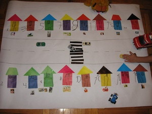 Если вы играете с одним малышом – он сам строит улицу, расставляя четные дома по одну сторону, а нечетные по другую.